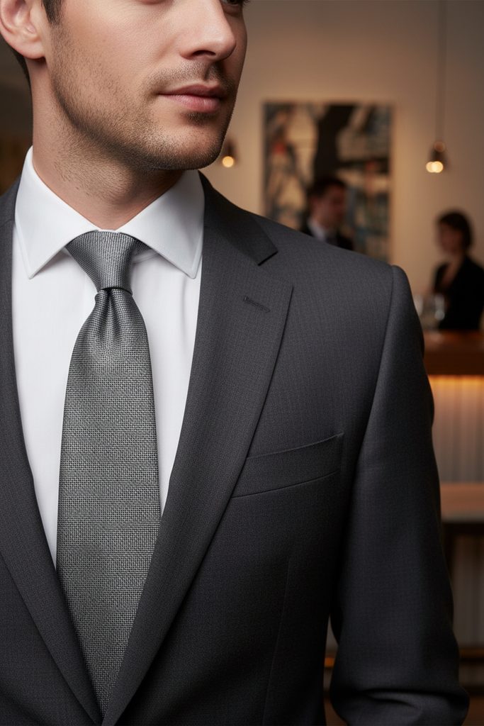 Šedá pánská kravata se strukturou povrchu a klasickou šířkou 7 cm je vhodná jako doplněk košile na různé společenské akce. Kravata je vyrobena z polyesteru a její celková délka je 145 cm.