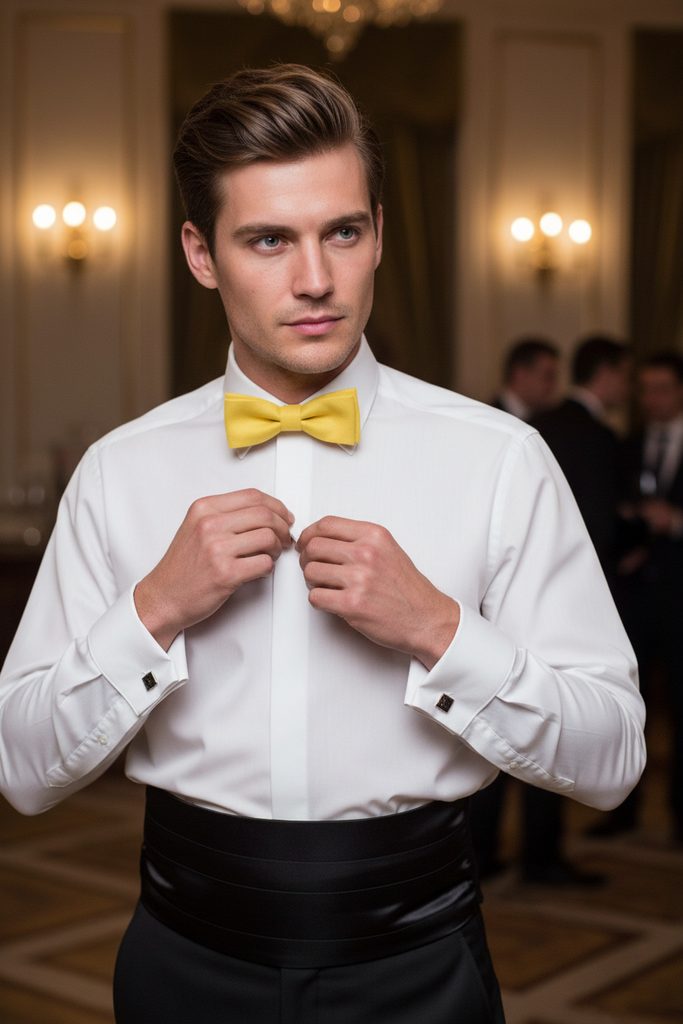 Komu se líbí Žlutá barva a má rád menší 10 cm variantu, tomu je určen tento elegantní motýlek. Předvázaný Moderní žlutý motýlek dokonale padne k jakékoli frakové či smokingové košili. Na zadní straně motýlku je připevněn háček s očkem, díky tomu lze snadno regulovat délku dle obvodu Vašeho krku.