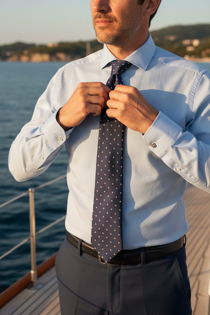 Předností této polyesterové kravaty Avantgard je vysoká odolnost. Polyesterová vlákna jsou vysoce odolná a proto polyesterová Modrá kravata vzor plachetnice vyniká snadnou péčí. Polyester má obecně malou navlhavost, to znamená, že se rychle vysouší v případě namočení. Oproti kravatám vyrobených z hedvábí mají polyesterové kravaty nižší lesk.
